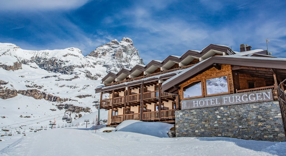 Hotel Meublé Furggen i Cervinia erbjuder riktig ski-in/ski-out direkt vid pisten och ligger bara 400/500 meter från liften – perfekt för enkel tillgång till skidåkning.