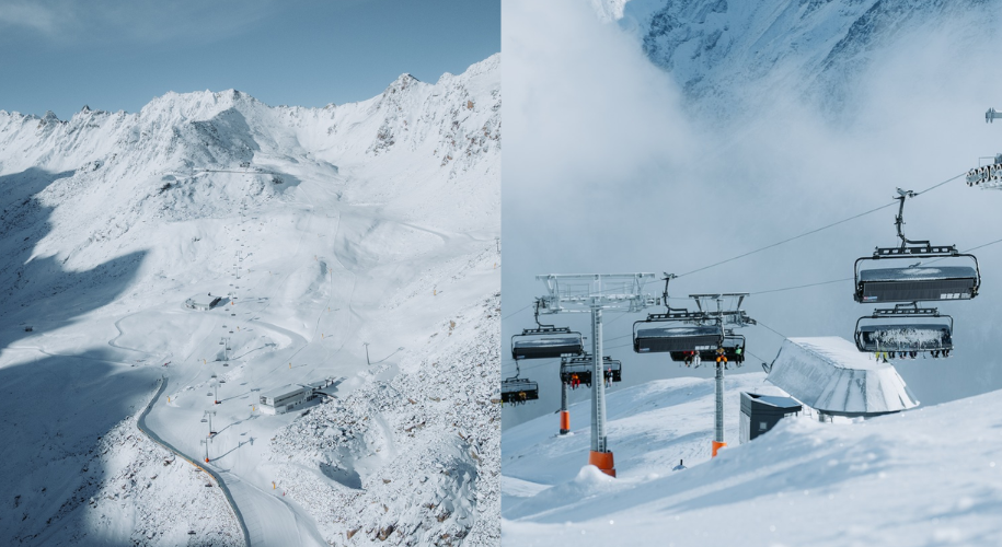 Bilderna är tagna den 25 november, då allt åter var helt vitt – även nere i dalen. Fotokälla: Sölden – via deras officiella Facebook-sida.