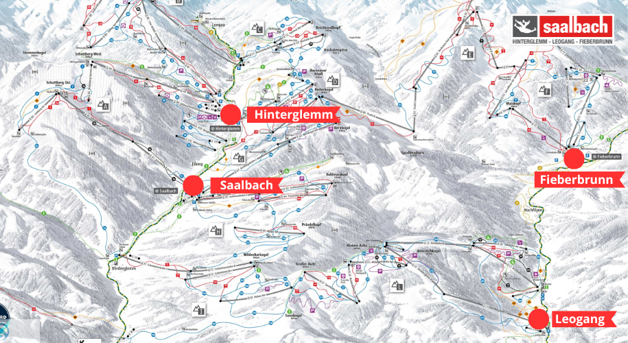 Skicircus är resultatet av en perfekt sammankoppling mellan fyra regioner och två österrikiska förbundsländer. Saalbach och Hinterglemm ligger i Salzburg, Leogang på gränsen till Tyrolen och Fieberbrunn i Tyrolen. Tillsammans bildar de en enastående skidupplevelse med toppmoderna liftsystem och optimala förbindelser mellan dalarna.