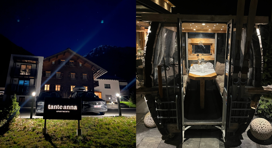 St. Gallenkirch har ingen klassisk gågata, men flera bra matställen och butiker. Vi bodde i lägenheterna Tante Anna, en kort bilresa från gondolerna, där värden David bjöd på nybakat bröd varje morgon. Middag åt vi bland annat på det trendiga Revier Mountain Lodge Montafon och den charmiga Genusshotel Vermala Montafon – en fröjd för både öga och smaklökar.