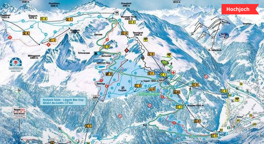 Vid första anblicken kan Hochjoch se mindre nybörjarvänligt ut på pistkartan, men de röda pisterna är förvånansvärt lättåkta. Det gör området mycket tillgängligt även för medelgoda skidåkare.