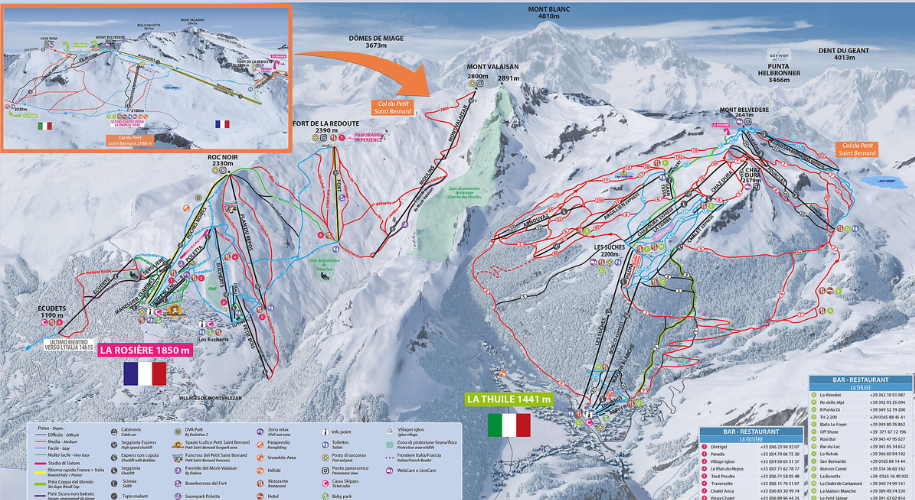 La Thuile (1.441 m) ligger vid foten av Rutor-glaciären och är anslutet till den franska skidorten La Rosière via det internationella skidområdet Espace San Bernardo. Tillsammans erbjuder området i de båda länderna 152 kilometer pister, 38 liftar och höjder på upp till 2 800 meter.