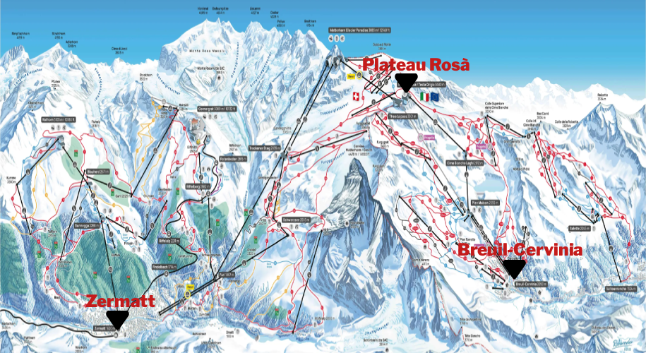 Breuil-Cervinia (2.050 m) ligger vid foten av det ikoniska Matterhorn och erbjuder ett av Europas mest imponerande skidområden. Tillsammans med Valtournenche och Zermatt i Schweiz bildar området Cervino Ski Paradise – totalt 360 kilometer pister och 24 liftar - och det är bara på den italienska sidan.