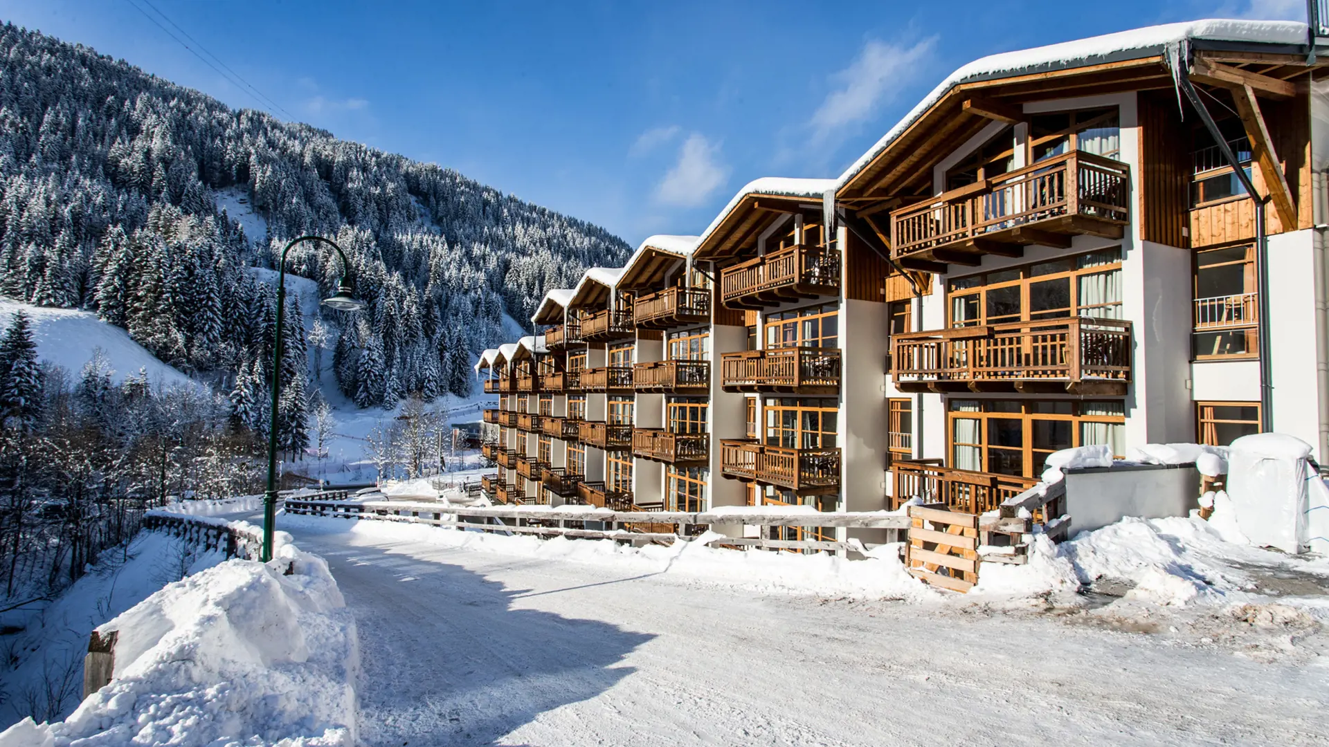 Montivas Lodge är ett modernt ski in/ski out-hotell som byggdes 2023 – perfekt beläget precis vid liften och nära den charmiga San Rocco-kyrkan.